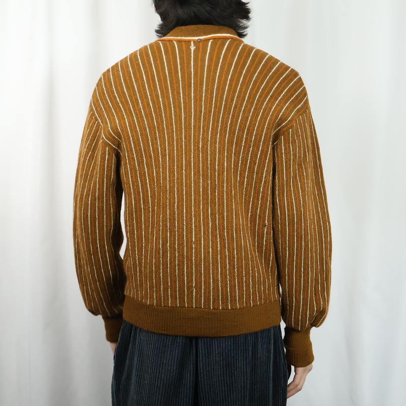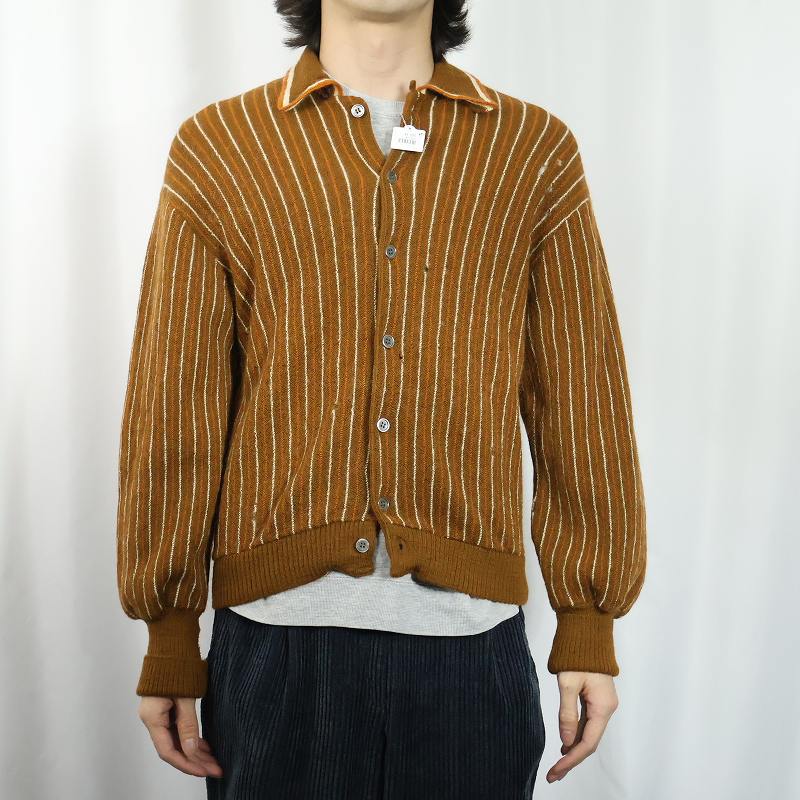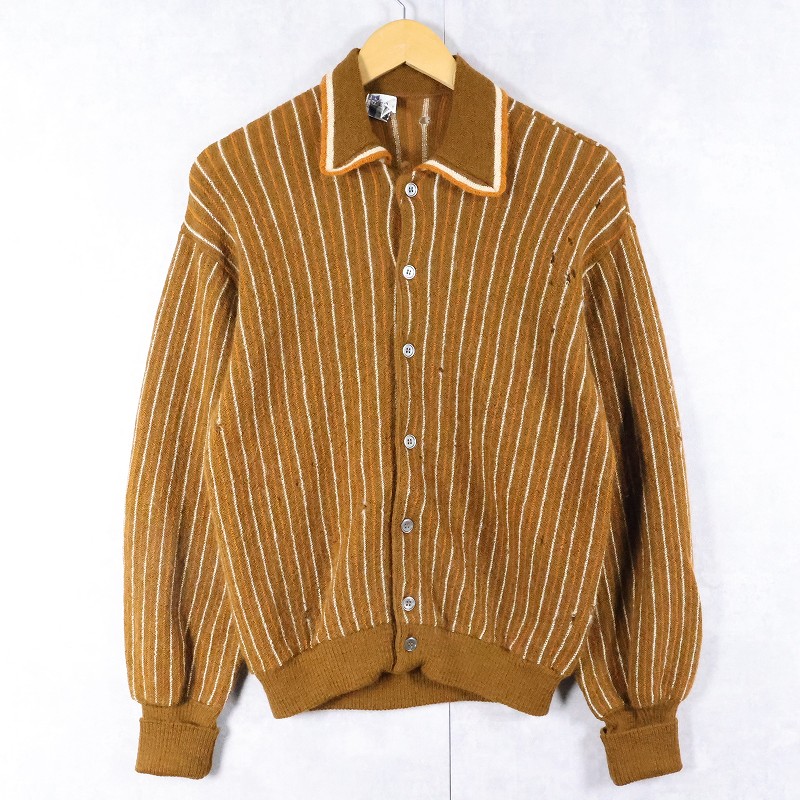 60〜70's HERITAGE USA製 ストライプ柄 ウールニットカーディガン M [166478]