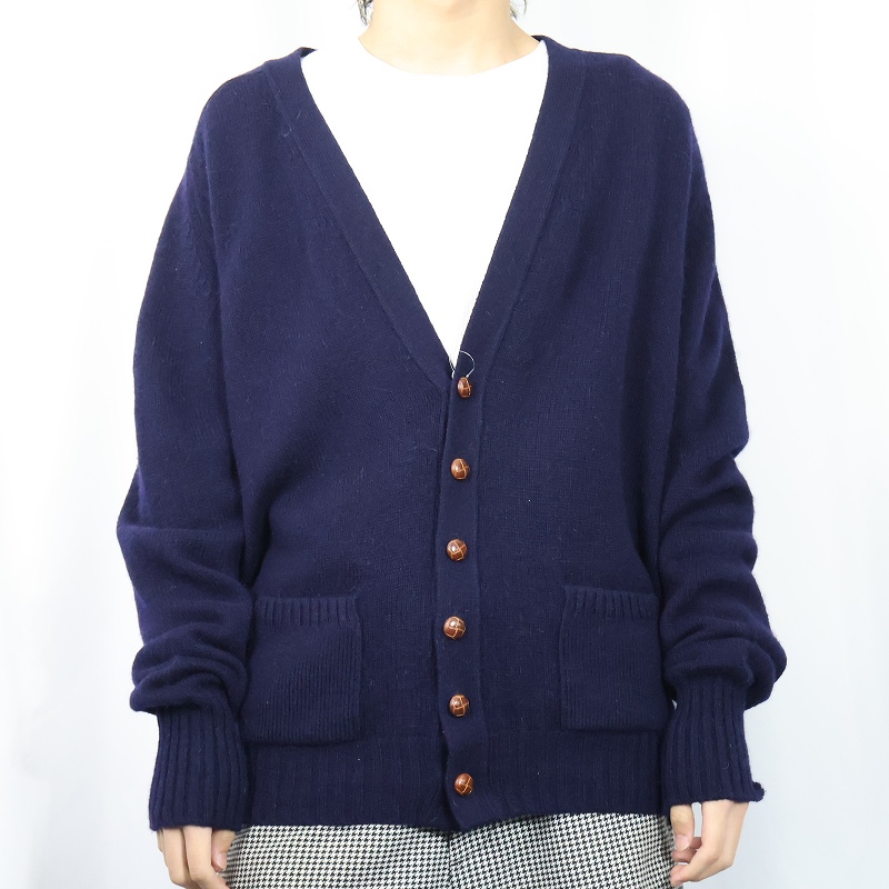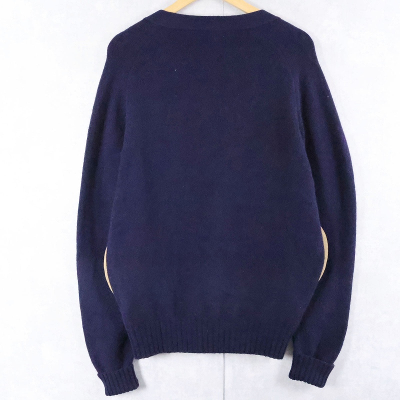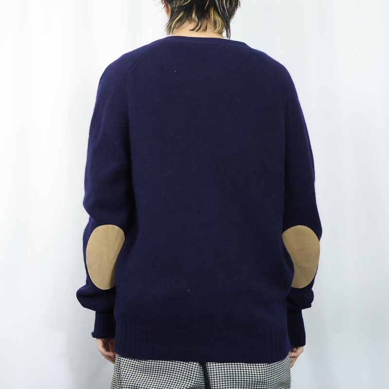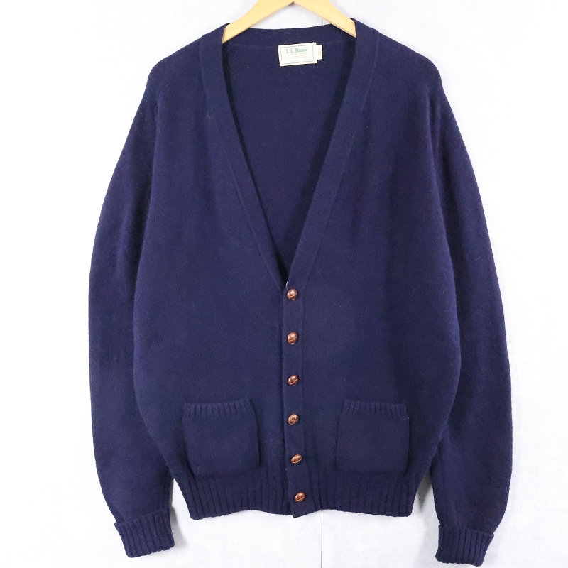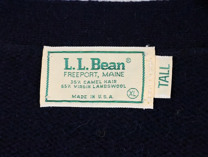 80's L.L.Bean USA製 エルボーパッチ付き キャメルヘア×ラムウール ニットカーディガン XL [166482]