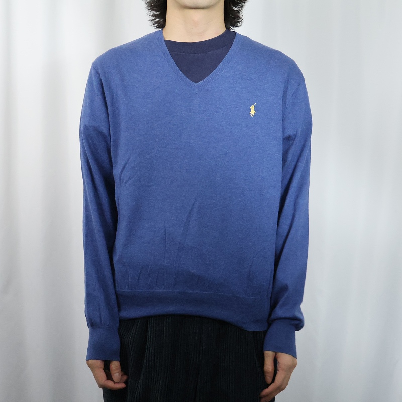 POLO Ralph Lauren ロゴ刺繍 "PIMA COTTON" Vネック コットンニットセーター M [166543]