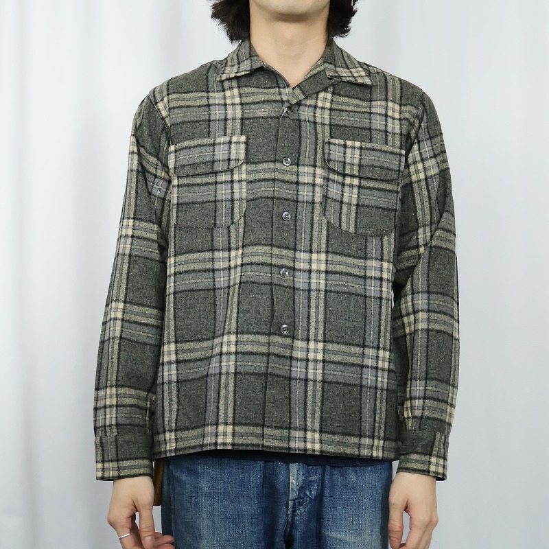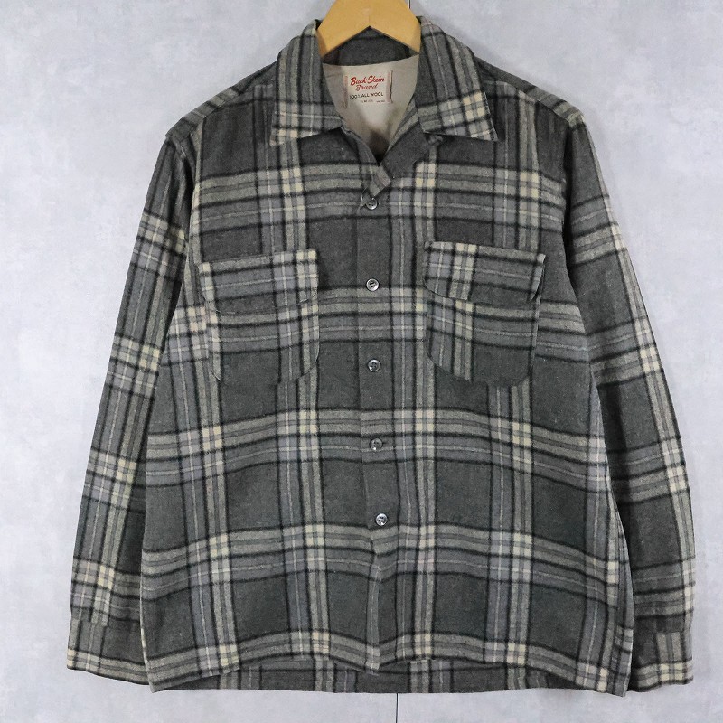 50's Buck Skein Brand チェック柄 ウールオープンカラーシャツ M [166574]