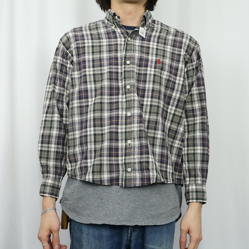 Ralph Lauren "BLAKE" マドラスチェック柄 コットン ボタンダウンシャツ M [166592]