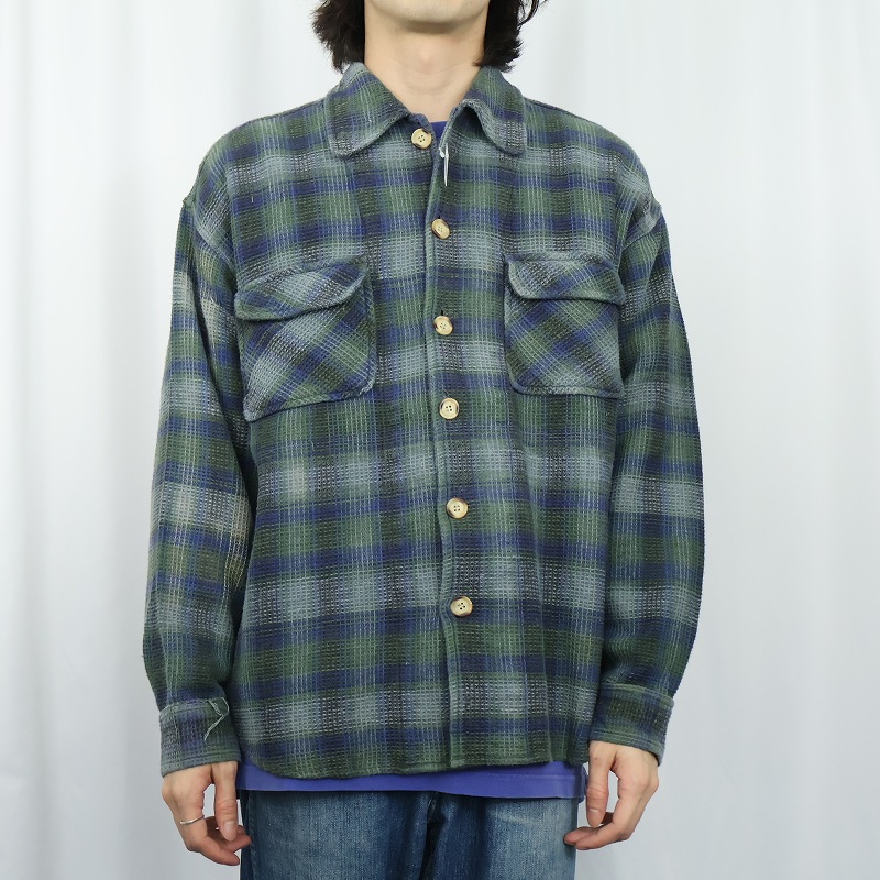 QUIKSILVER チェック柄 コットンワッフルシャツ L [166596]