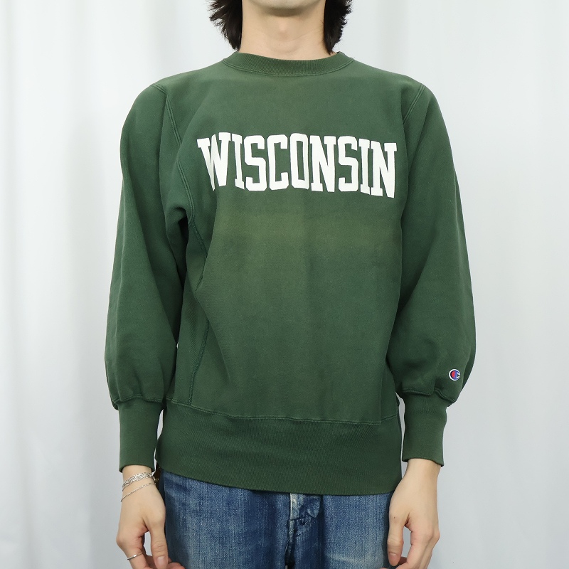 90's Champion REVERSE WEAVE USA製 "WISCONSIN" プリントスウェット M [166608]