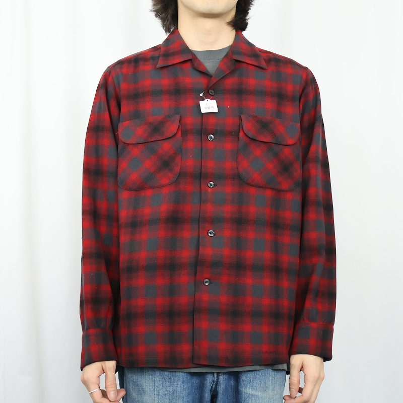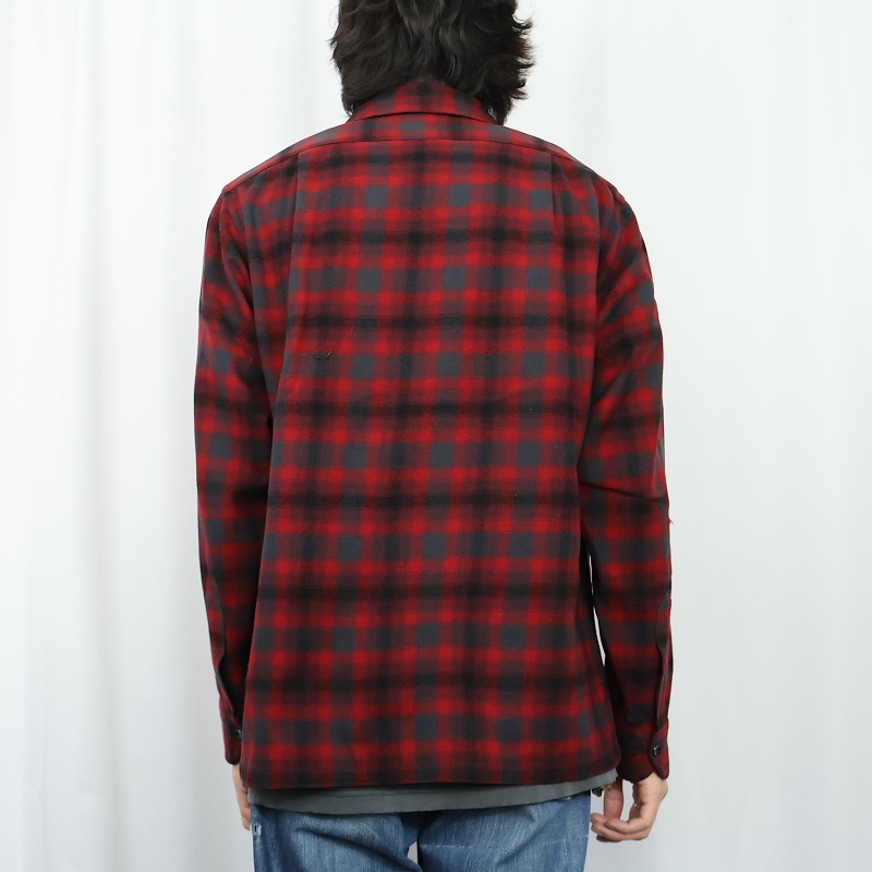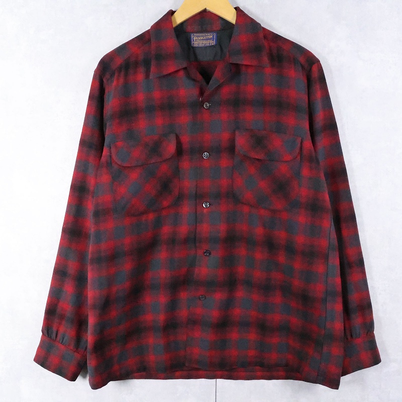 50's PENDLETON オンブレーチェック柄 ウールオープンカラーシャツ M [166640]