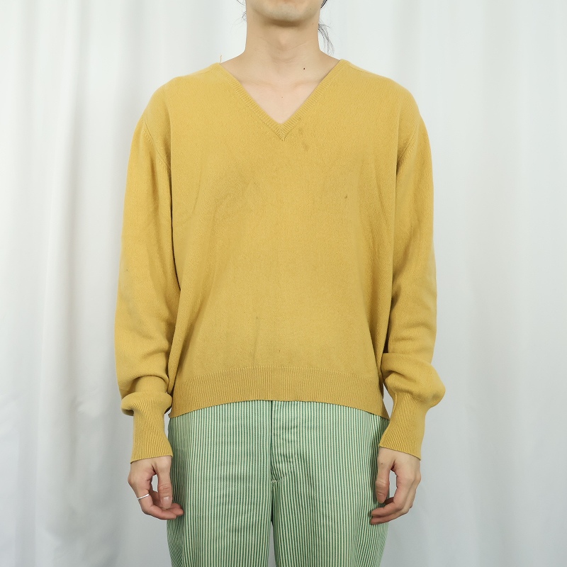 70〜80's Braemar SCOTLAND製 Vネック カシミアニットセーター [166735]