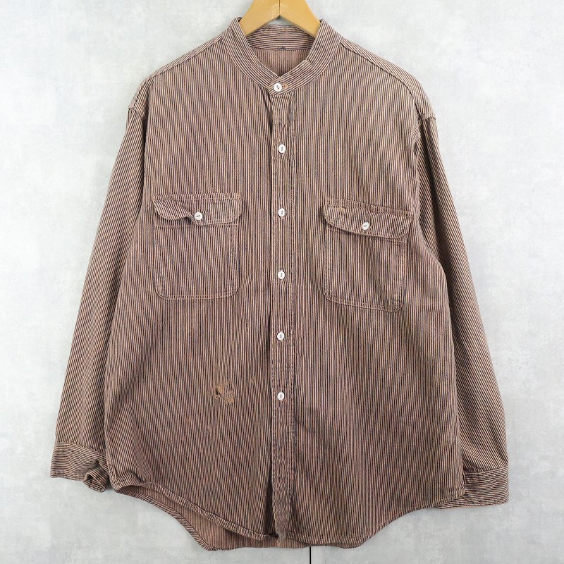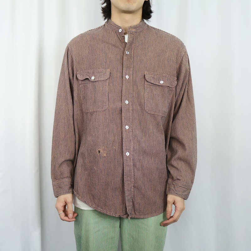 60〜70's ヒッコリーストライプ バンドカラー ワークシャツ [166762]