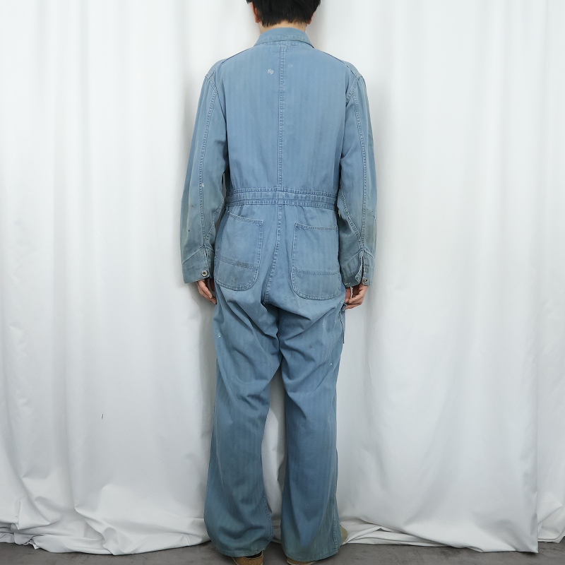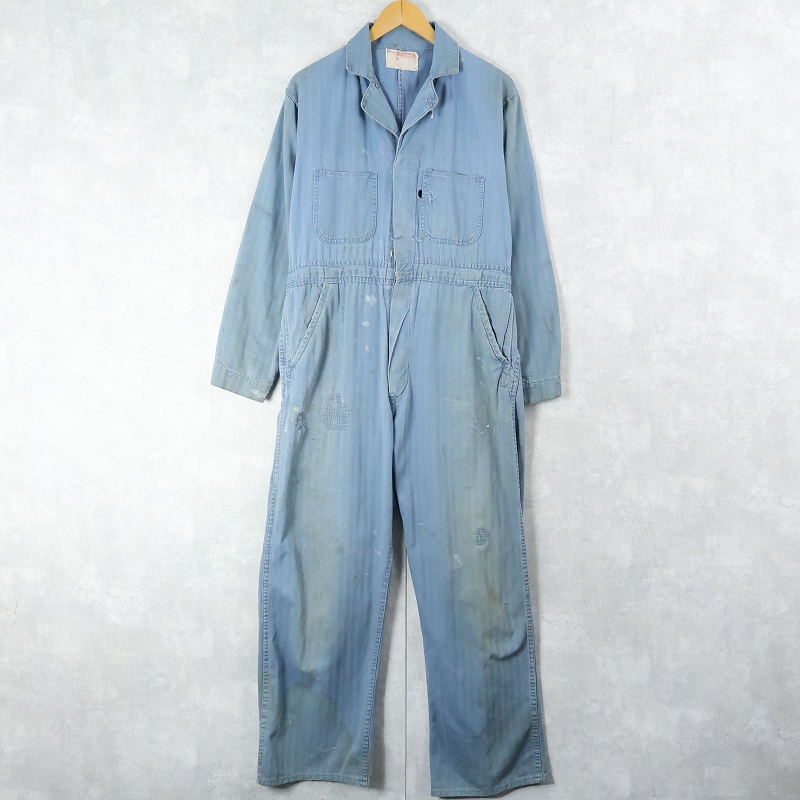 60〜70's WORK WEAR CORPORATION USA製 ヘリンボーンツイルジャンプスーツ SIZE40 [166777]