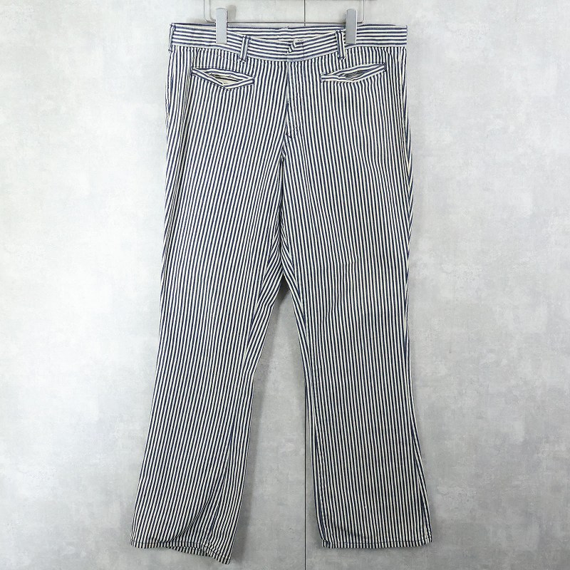 70〜80's CONTACT SLACKS BY MILLER ヒッコリーストライプ コットンフレアパンツ W36 [166782]
