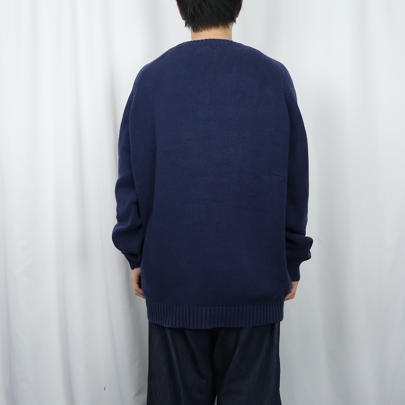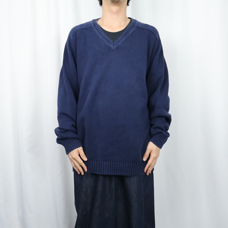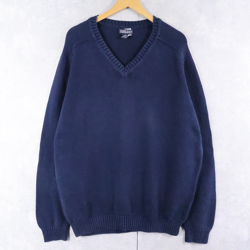 90's LANDS' END USA製 Vネック コットンニットセーター L [166797]