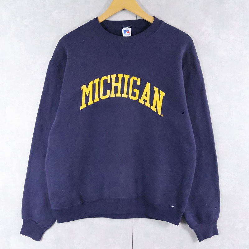 80's RUSSELL ATHLETIC USA製 "MICHIGAN" 前V プリントスウェットNAVY L [166802]