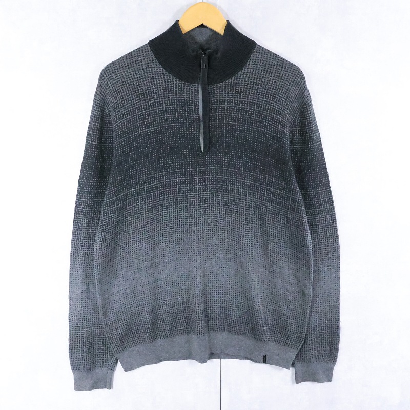 Calvin Klein 総柄 グラデーション ハーフジップ コットン×モダールニットセーター L [166885]