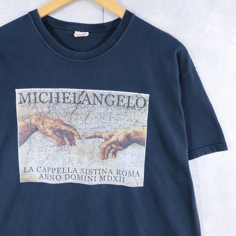 Michelangelo アダムの創造 アートプリントTシャツ NAVY [166907]