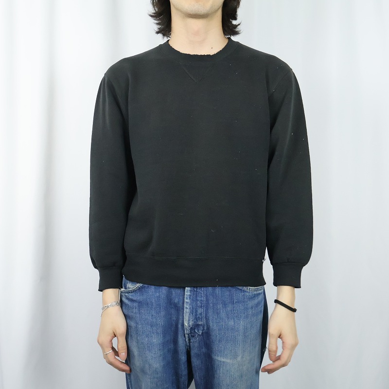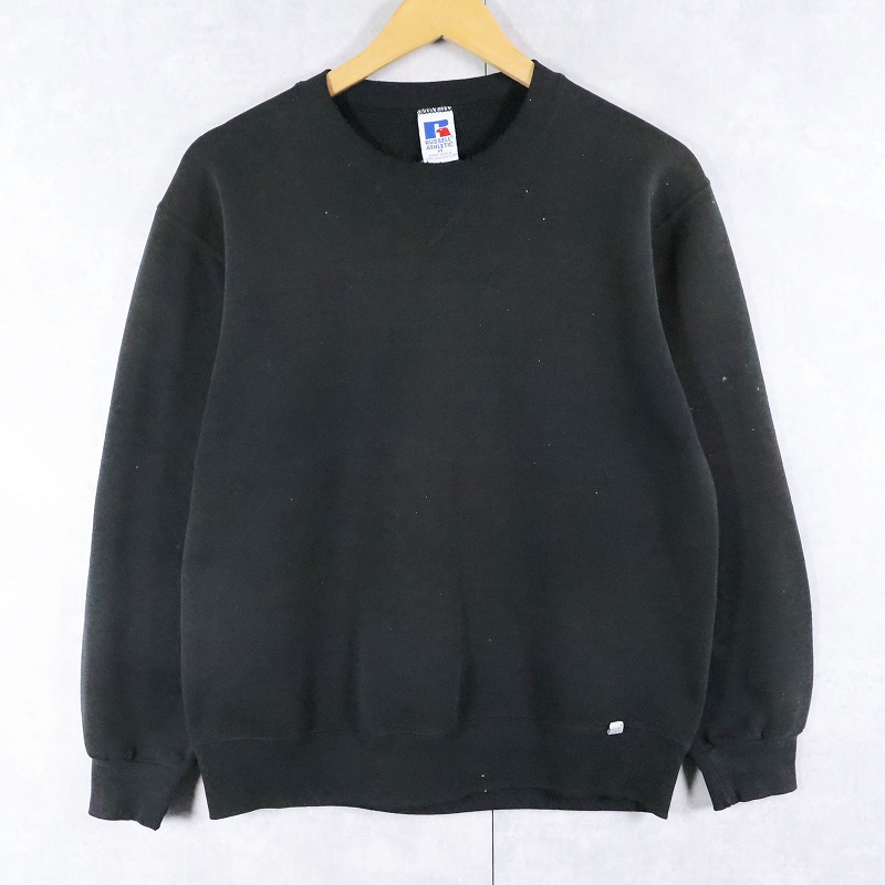 90's RUSSELL ATHLETIC USA製 前V 無地スウェット BLACK M [166930]
