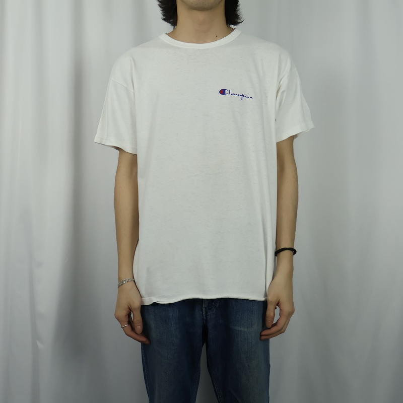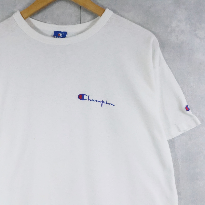 80〜90's Champion USA製 青刺繍タグ 中期 ロゴプリントTシャツ XL [166932]