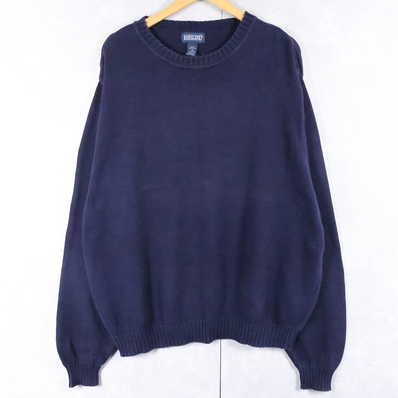 90's LANDS' END USA製 コットンニットセーター NAVY XL [166944]