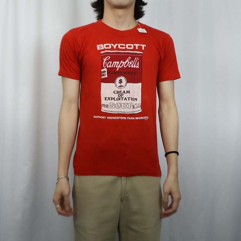 80's "BOYCOTT Campbell's" ボイコット運動 パロディプリントTシャツ [166997]