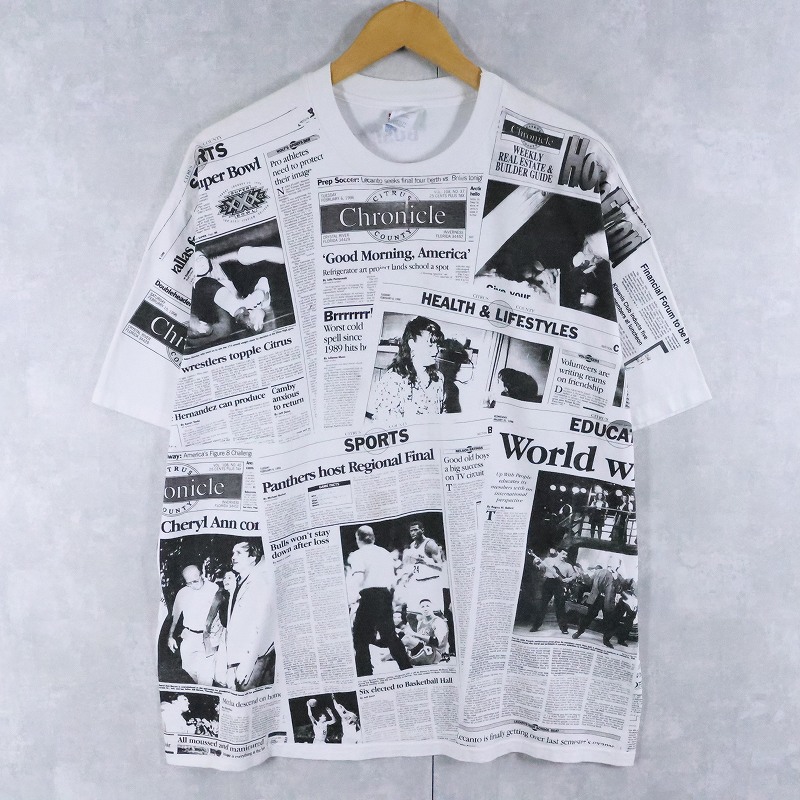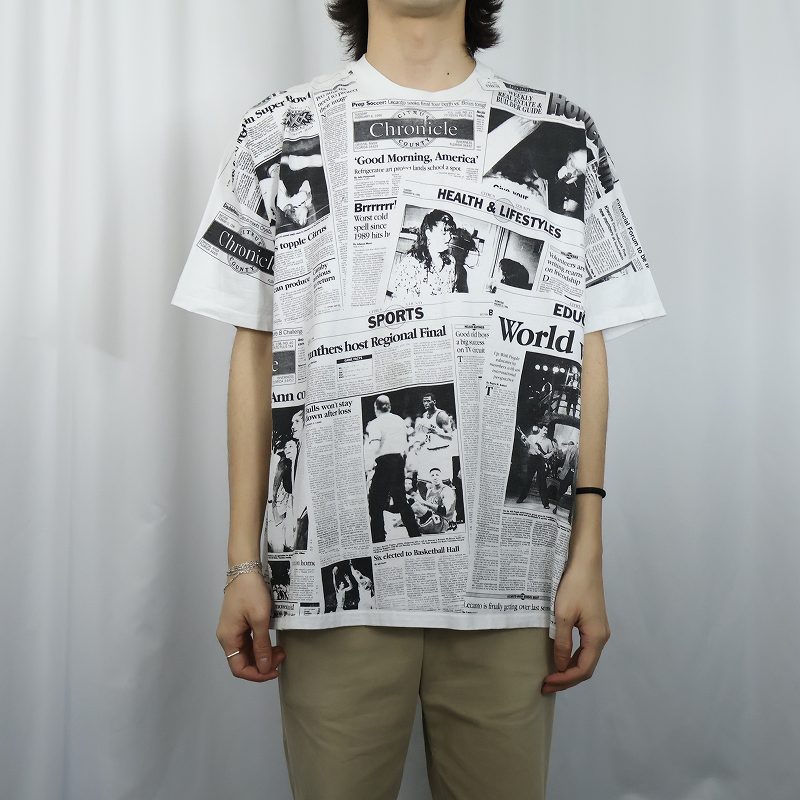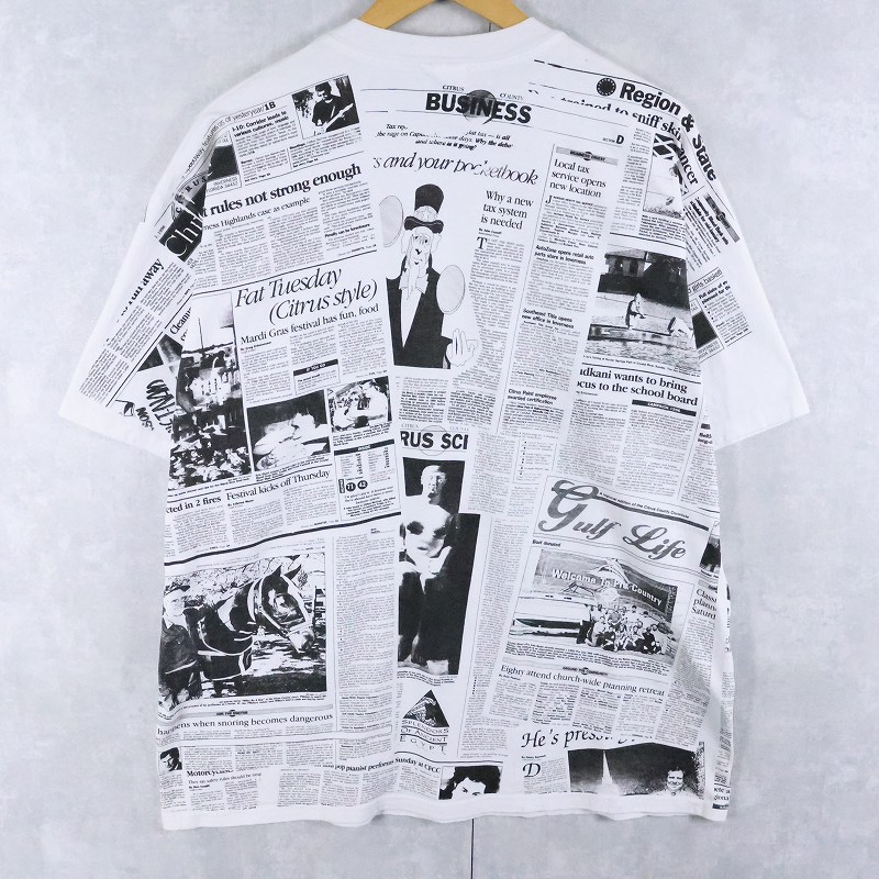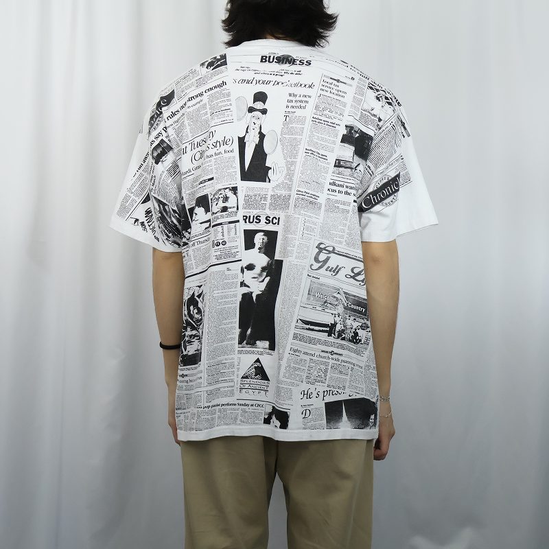 ニュースペーパー柄 大判プリントTシャツ XL [167002]