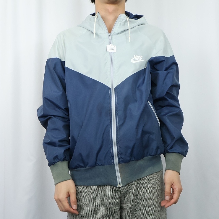 80's NIKE 紺タグ 切り替えデザイン ナイロンジップパーカー L [167066]