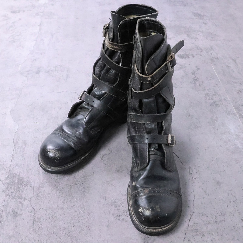 一本で巻いた長いレザーストラップが特徴的なこちらは、アメリカ軍の戦車兵に供給されていたタンカースブーツになります。 爆撃による戦車からの脱出などいざという時に、このストラップの最低1箇所を切断すれば、容易にブーツと身体を離すことができるという仕組になっています。