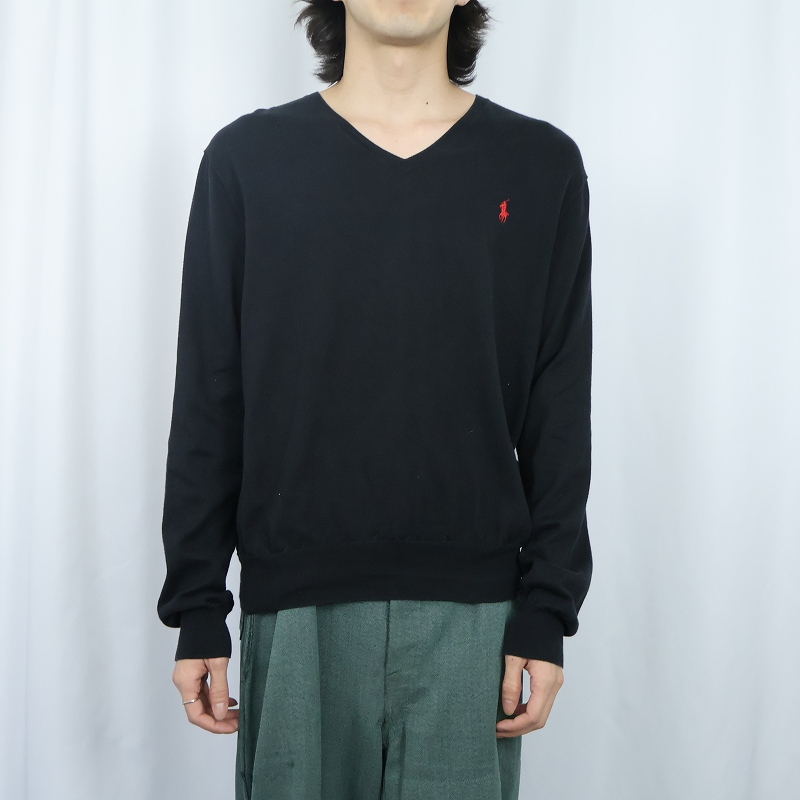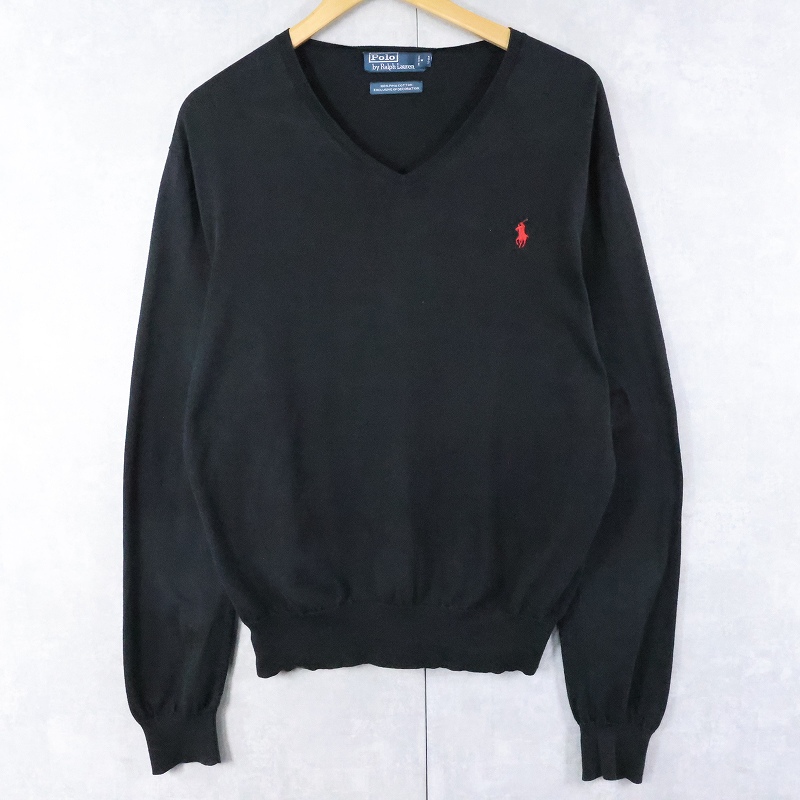 POLO Ralph Lauren Vネック ピマコットン ニットセーター BLACK M [167107]