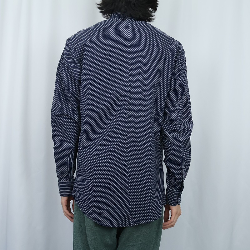 90's ARMANI COLLEZIONI ITALY製 織り柄 コットンシャツ NAVY M [167109]