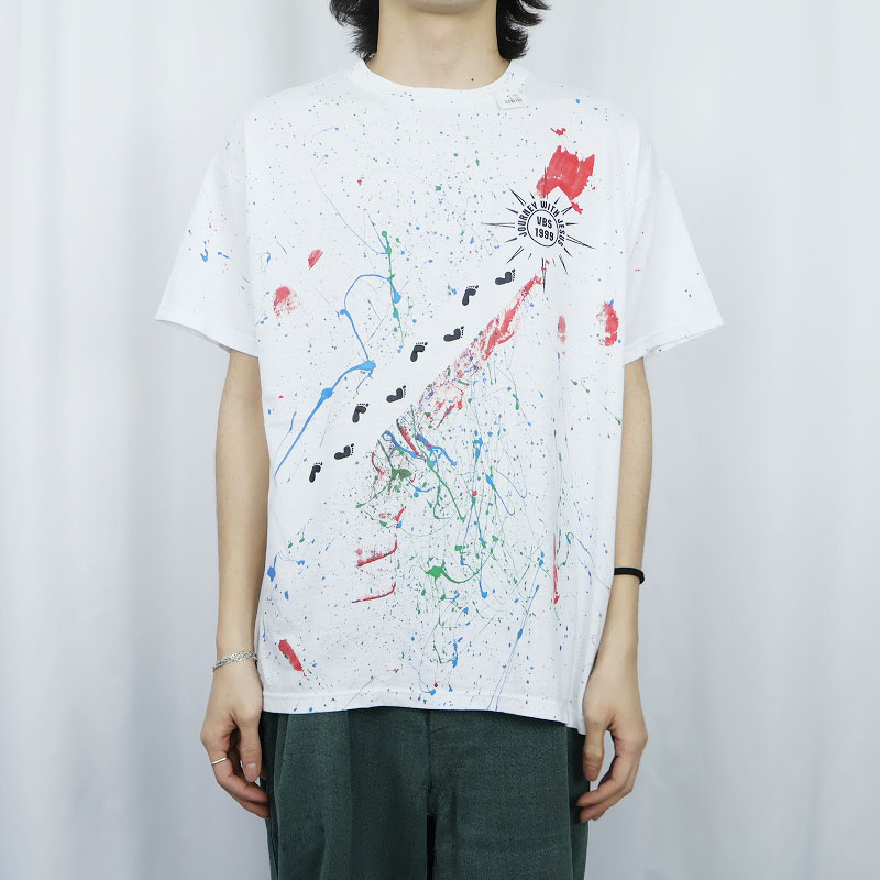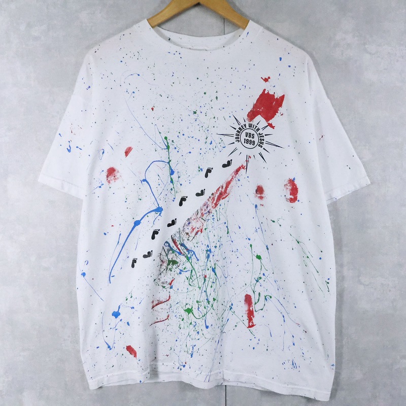 90's "JOURNEY WITH JESUS VBS 1999" ペンキペイント ジーザスプリントTシャツ XL [167115]