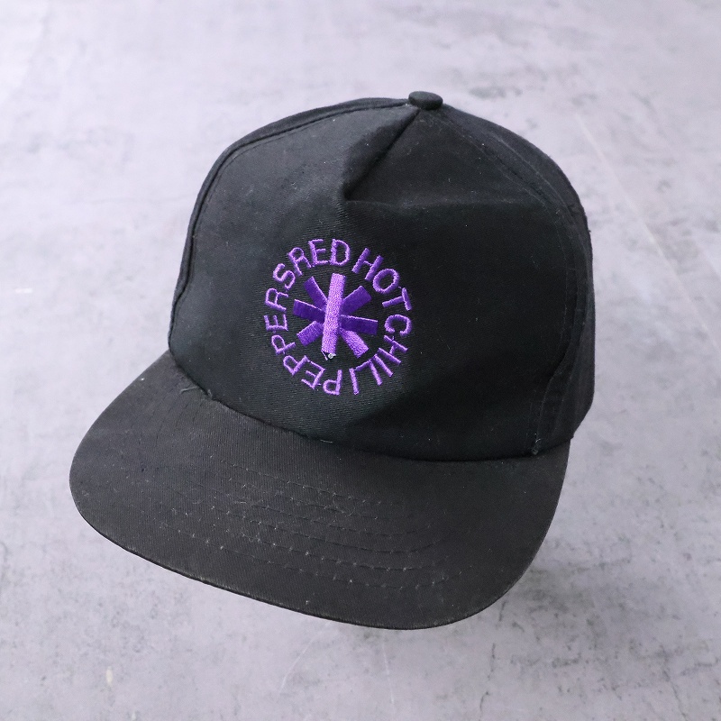 90's RED HOT CHILI PEPPERS ロゴ刺繍 スナップバック コットンキャップ DEADSTOCK BLACK [167155]