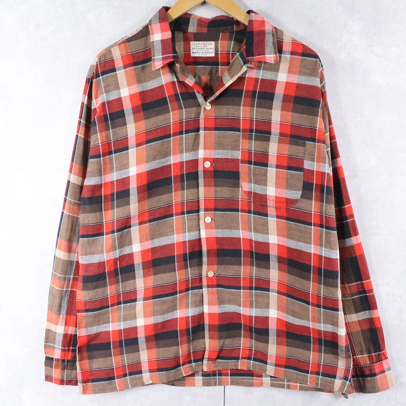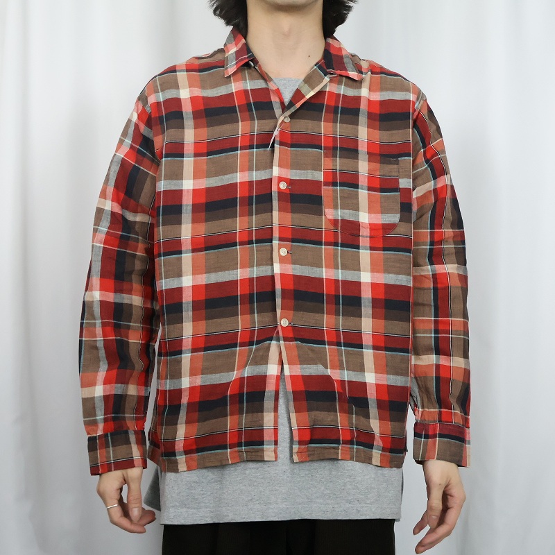 50〜60's EVER-FRESH チェック柄 コットンオープンカラーシャツ L [167162]