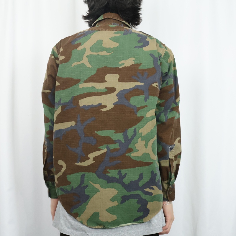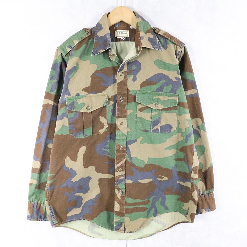 80〜90's L.L.Bean "MILITARY TYPE" ウッドランドカモ柄 コットンシャツ M [167189]