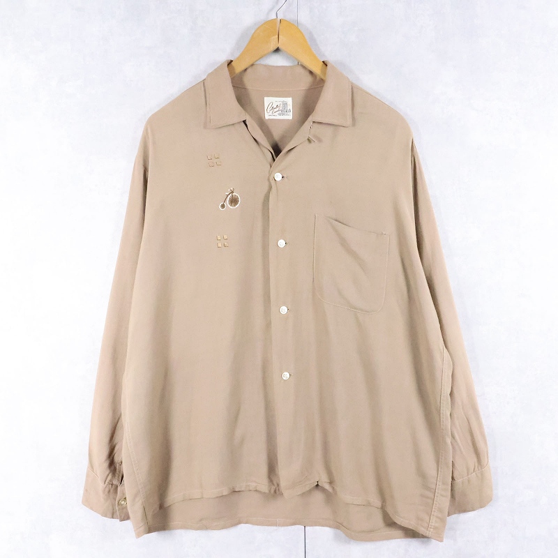 60's Continental Casuals 自転車刺繍 レーヨンオープンカラーシャツ SIZE16-L16 1/2 [167200]
