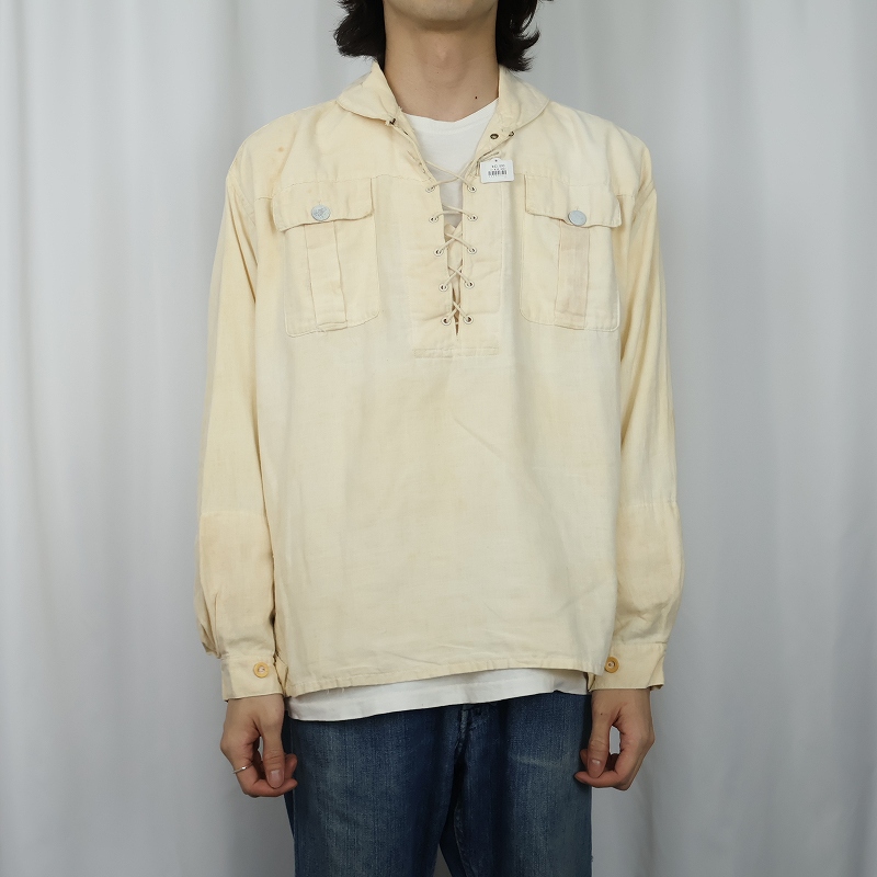 40's EURO Military コットンガーゼ ショールカラー プルオーバーシャツ [167253]
