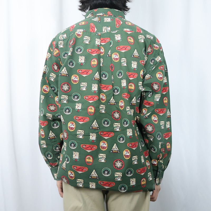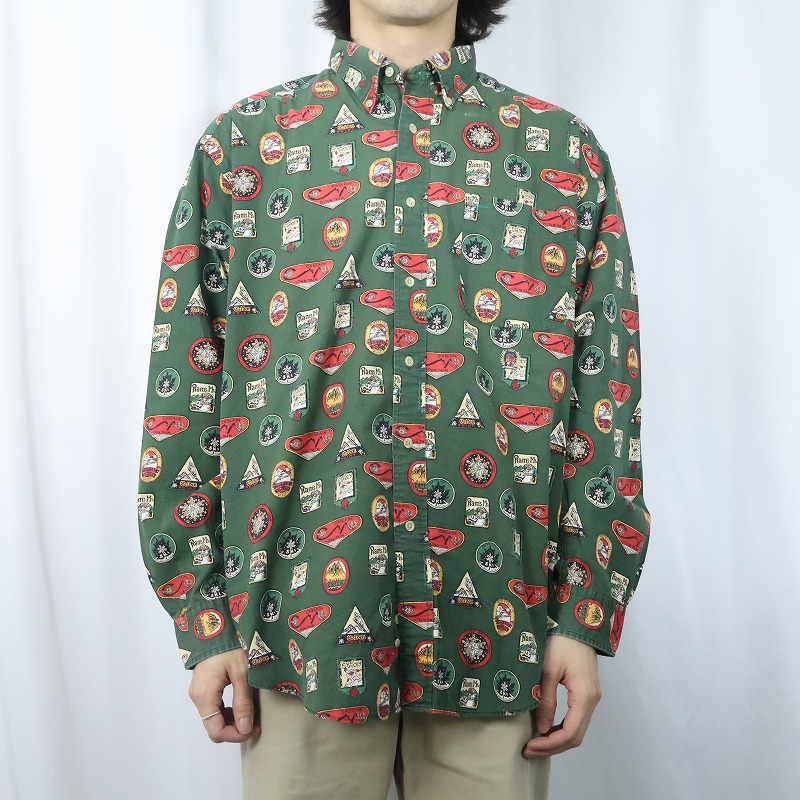 TOMMY HILFIGER 総柄 コットンボタンダウンシャツ L [167289]