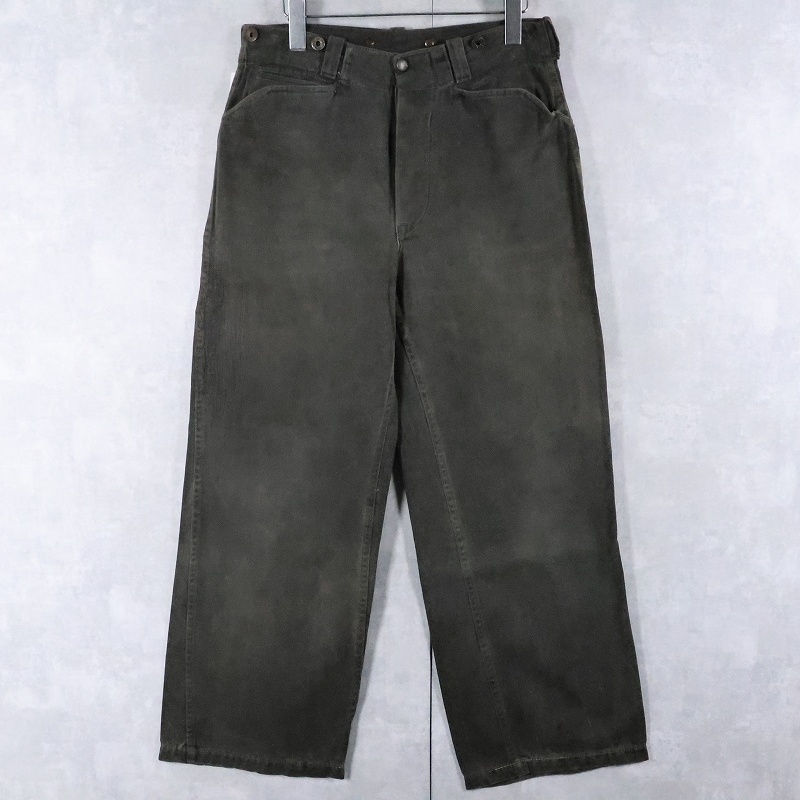40〜50's "Frisco Type" 針刺しシンチバック コットンツイルワークパンツ BLACK W30 [167315]