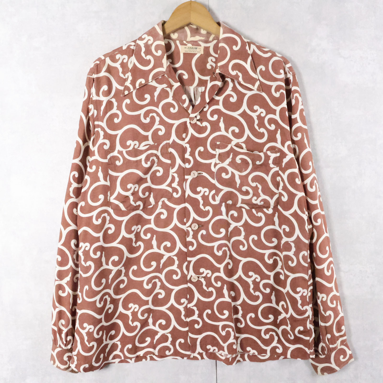 40's ARROW USA製 アラベスク柄 コットンオープンカラーシャツ SIZE2 [167325]