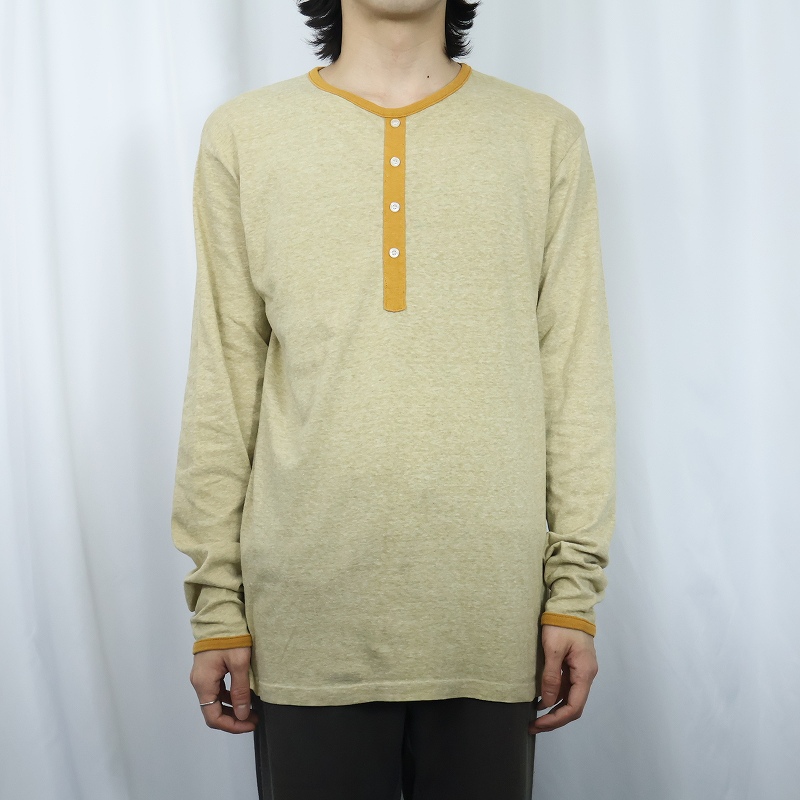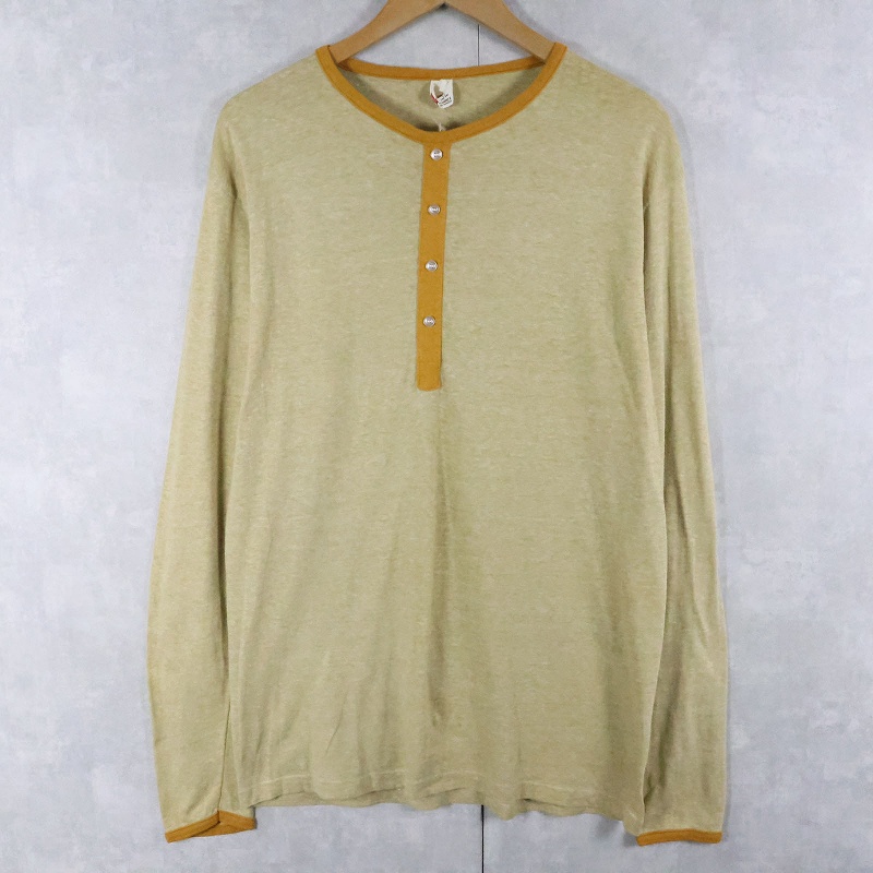 60〜70's Hanes ヘンリーネックデザイン コットン×ポリエステルロンT XL [167334]