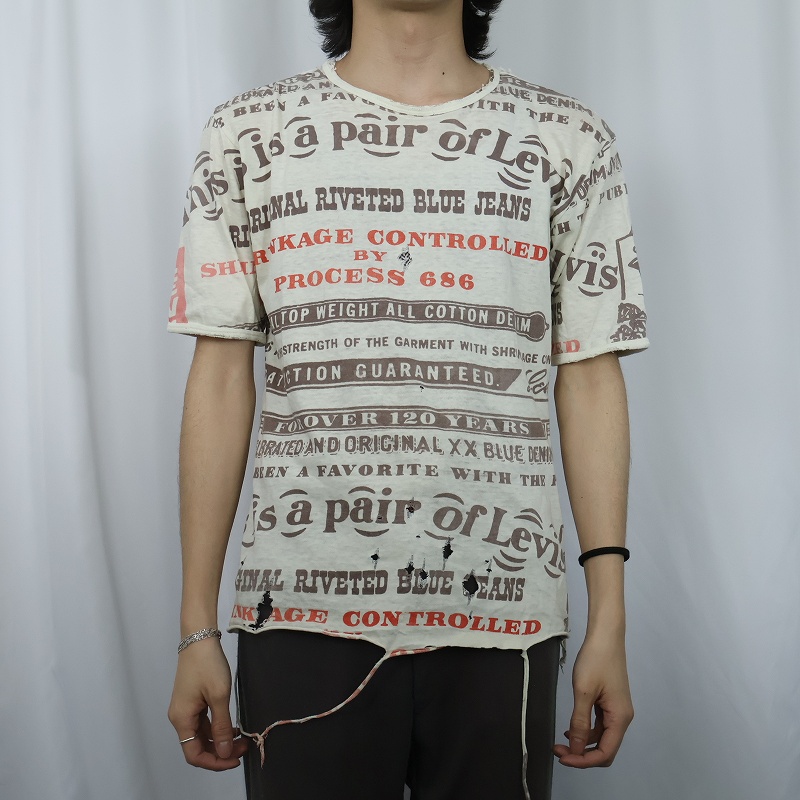 70's Levi's 大判 染み込みプリントTシャツ L [167371]