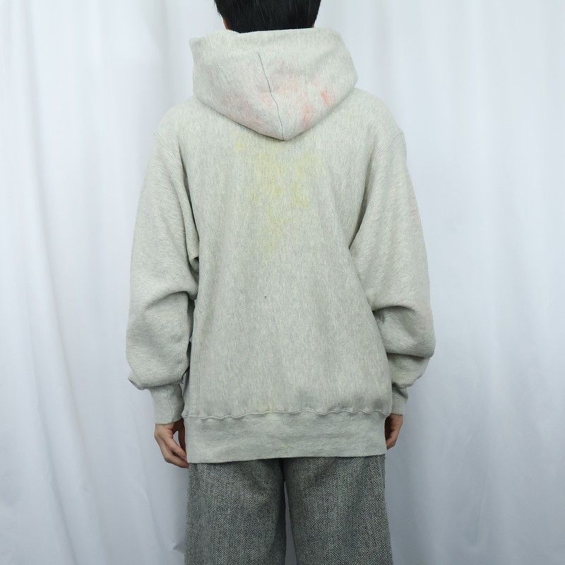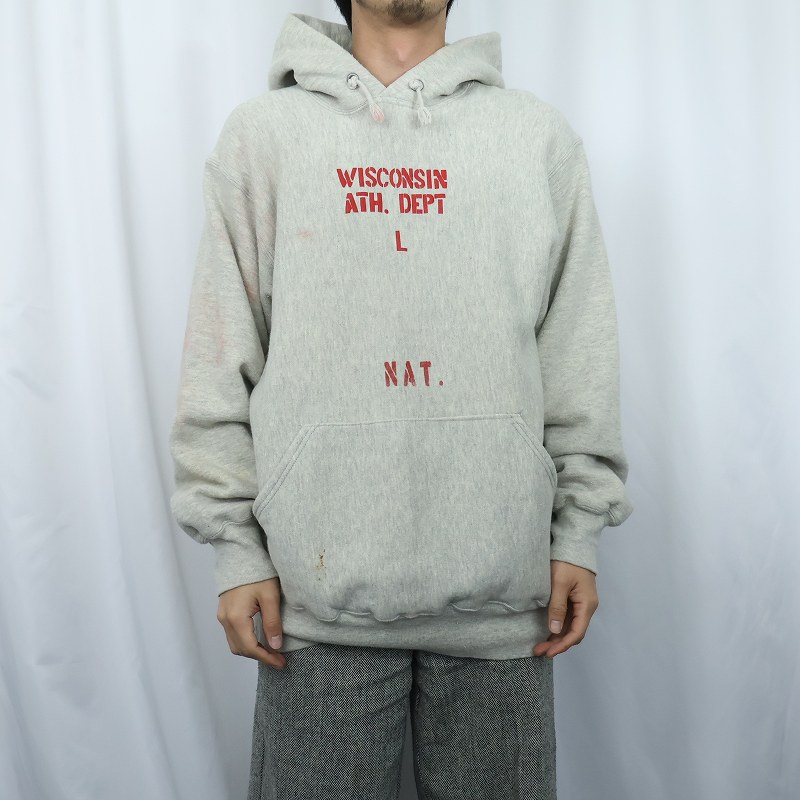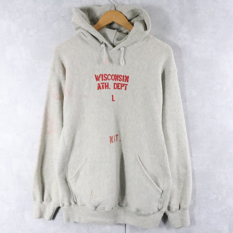 90's MacGregor Sand-Knit REVERSE WEAVE TYPE コットン×レーヨン "WISCONSIN ATH.DEPT L" プリントスウェットフーディー L [167405]