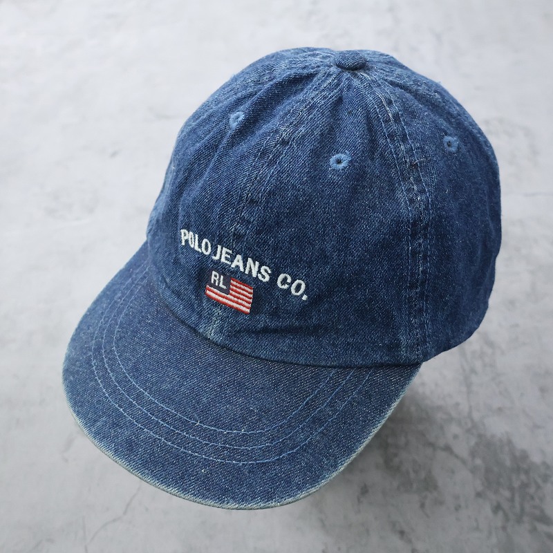 90's〜 POLO JEANS CO. RALPH LAUREN ロゴ刺繍 デニムキャップ ONESIZE [167411]
