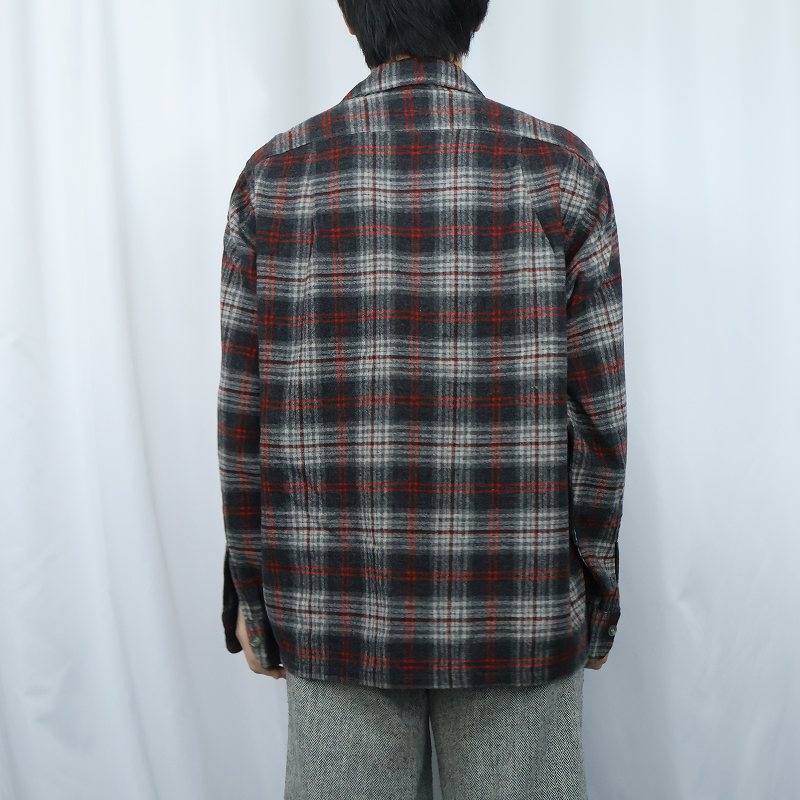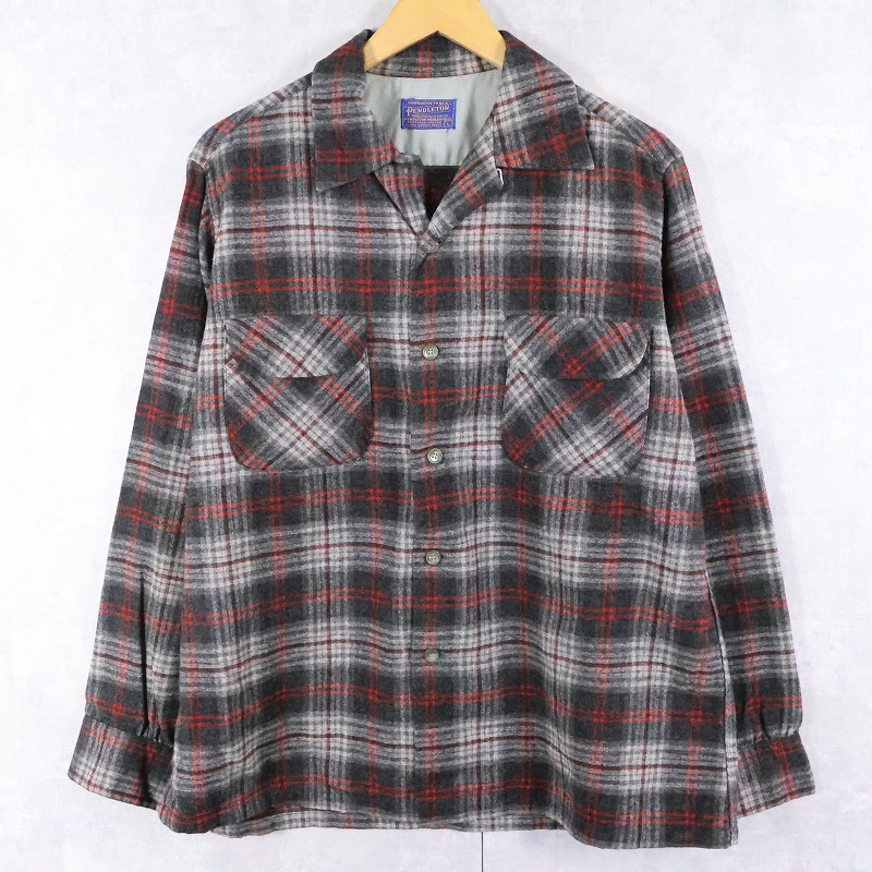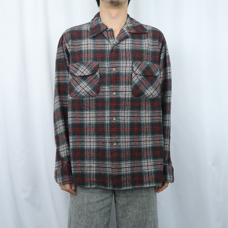 50〜60's PENDLETON オンブレーチェック柄 ウールオープンカラーシャツ L [167425]