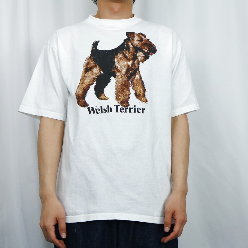 90's USA製 "Welsh Terrier" 犬プリントTシャツ L [167452]