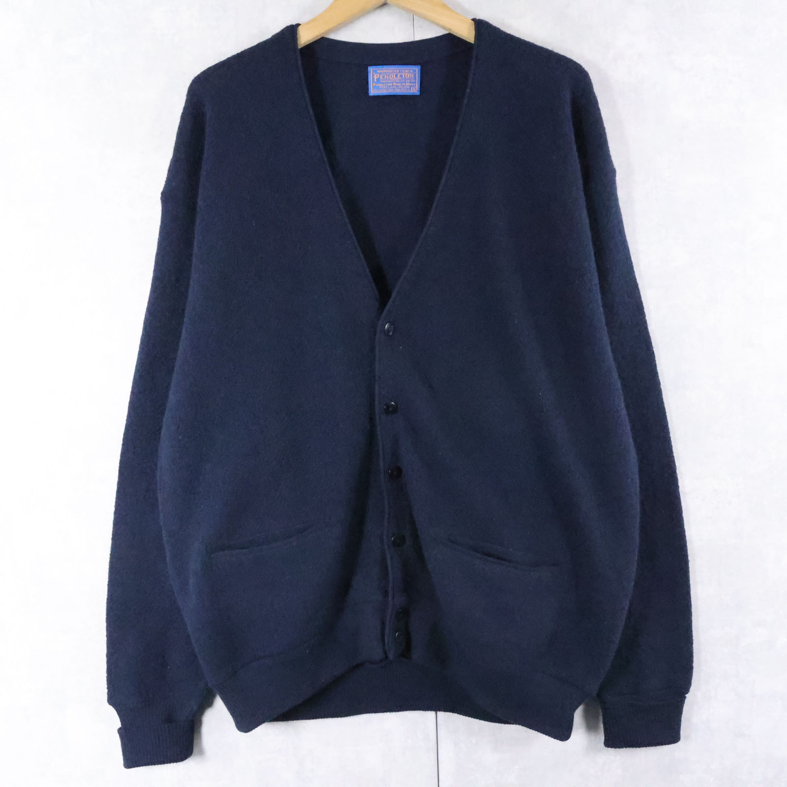 80's PENDLETON USA製 ウールニットカーディガン NAVY XL [167471]