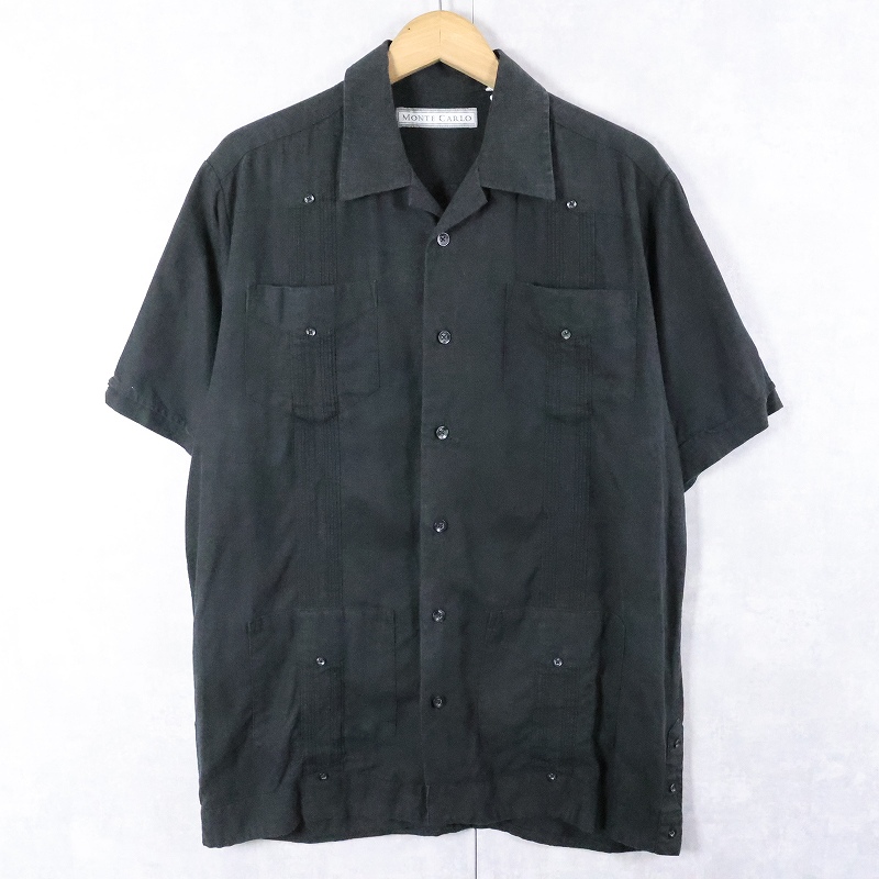 90's MONTE CARLO リネン×レーヨン キューバシャツ BLACK S [167537]