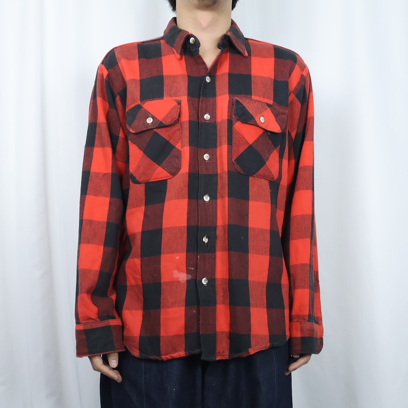 70〜80's DAKOTA USA製 バッファローチェック柄 ヘビーネルシャツ L [167541]