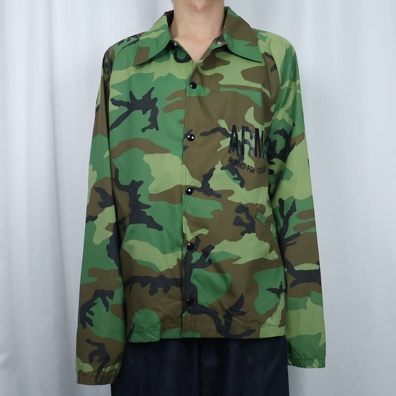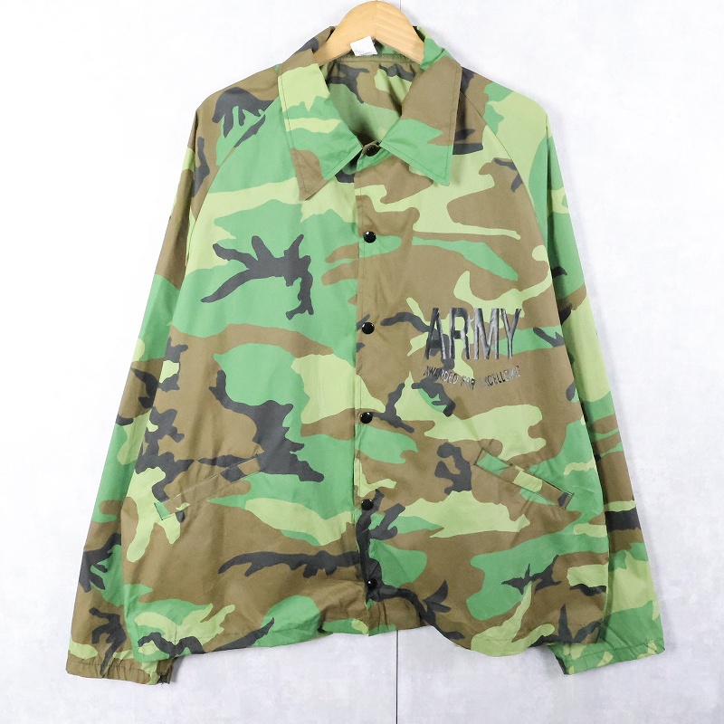 80〜90's BROADWAY SPORTING GODDS USA製 ウッドランドカモ柄 ナイロンコーチジャケット XL [167552]