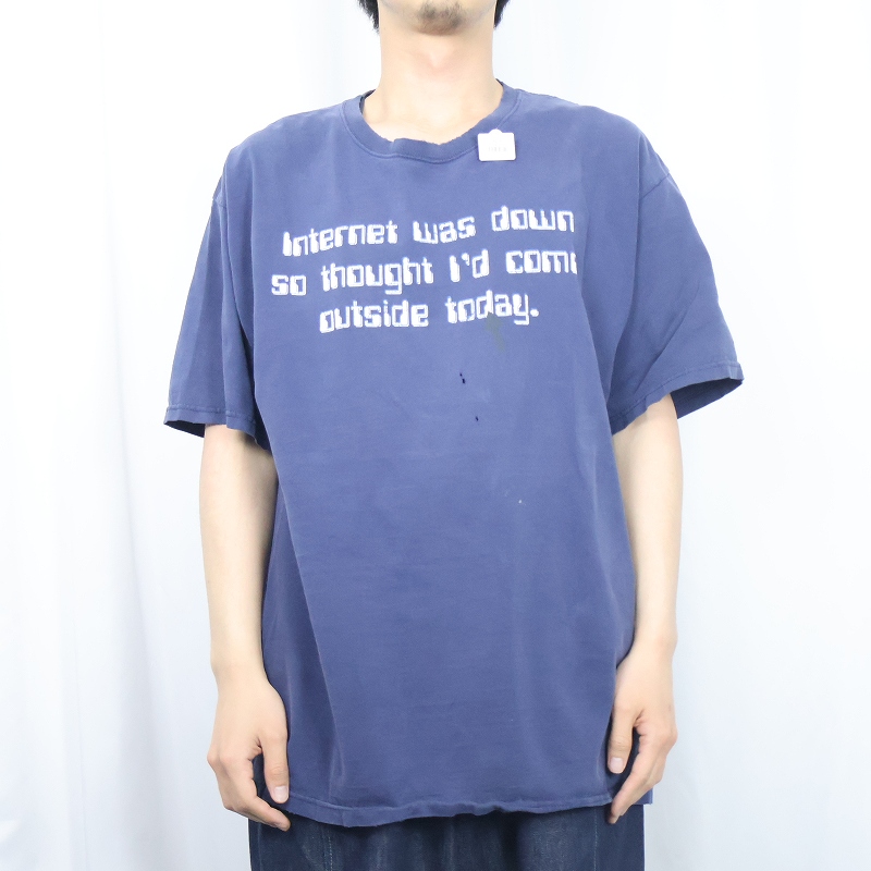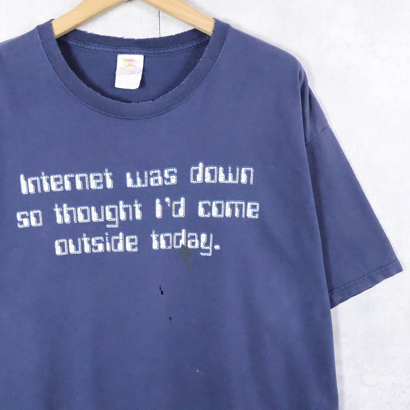 90's "Internet was down..." メッセージプリントTシャツ NAVY XL [167571]