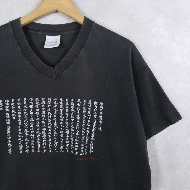 90's 般若心経 Vネック プリントTシャツ BLACK XL [167615]