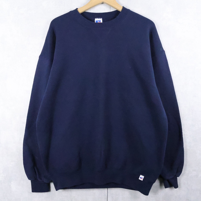 90's RUSSELL ATHLETIC USA製 前V 無地スウェット NAVY XL [167638]