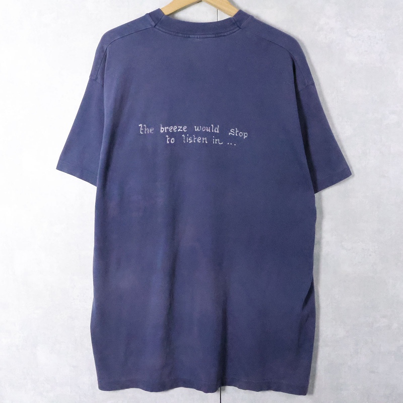 90's JERRY GARCIA "The breeze would stop to listen in..." ミュージシャンプリントTシャツ NAVY XL [167655]