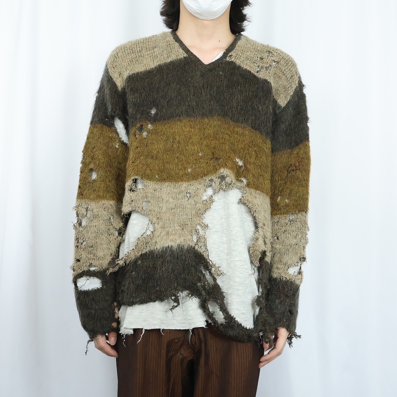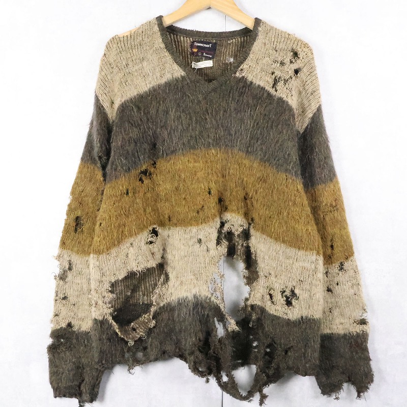 60's TOWNCRAFT Penneys ボーダー柄 Vネック モヘアニットセーター L [167678]