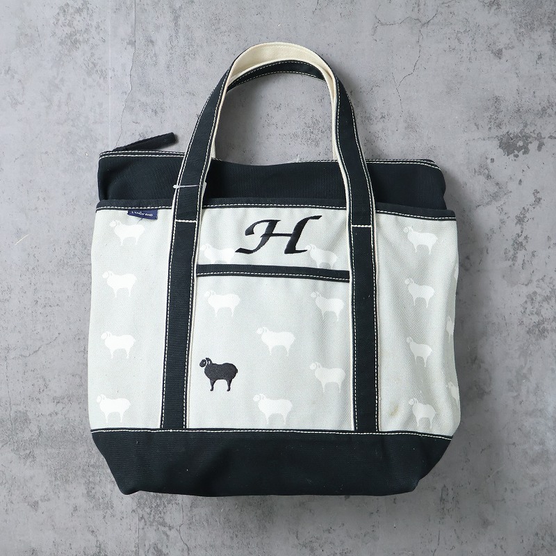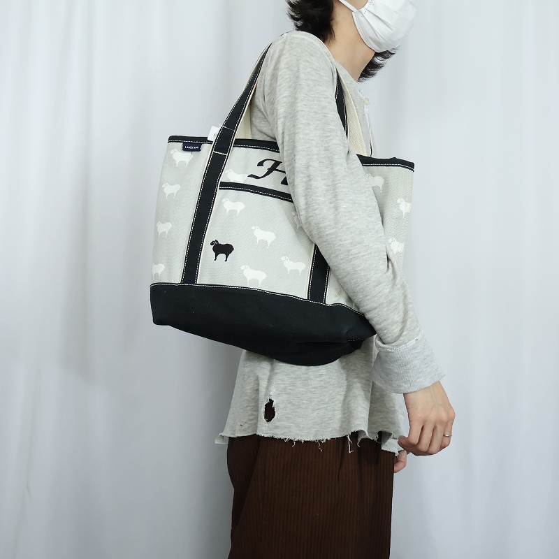 LANDS' END 羊柄×刺繡付き キャンバストートバッグ MEDIUM [167698]